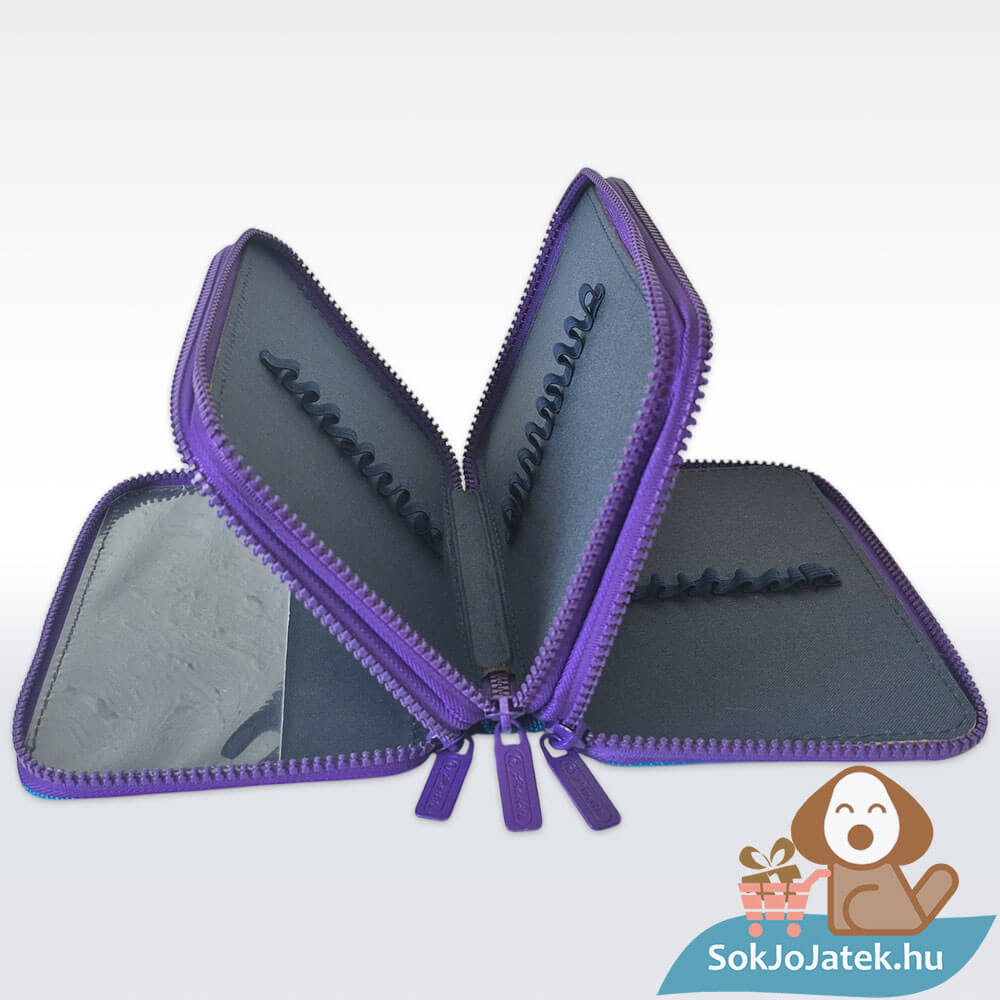 A tolltartó három külön rekesszel rendelkezik, így bőven jut hely minden írószerednek. Üres belső kialakítása lehetővé teszi, hogy saját igényeid szerint rendezd be – legyen szó ceruzákról, tollakról, radírokról vagy vonalzóról.
