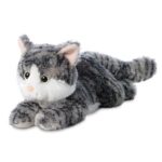 Prémium minőségű, Aurora márkájú átölelhető fekvő, szürke Lily plüss cica zöld szemekkel, 30 cm. A plüss macska teljes mérete az orra hegyétől a farka végéig mérve kb. 35 cm. Magassága körülbelül 13 cm, szélessége 15 cm. Újrahasznosított és újrahasznosítható anyagok felhasználásával készült. Szemei zöld-fekete színűek, műanyagból készültek. Orra textil borítású műanyag, szája hímezve van. Alulról kisebb beépített babzsák súlyozza le, mely nem hozzáférhető. Mosógépben kimosni nem szabad, szükség esetén nedves ruhával töröld át. 1 éven felüliek számára ajánlott.