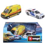 Indulj a baleset helyszínére és vizsgáld ki az ügyet két szemszögből! A Bburago rendőr- és mentőautó készlettel elképesztő izgalmakat élhetsz át. A játékautók kialakítása hűen megidézi a magyar közszolgálati járművek külsejét, így könnyedén bele tudod élni magad bármilyen szerepjátékba. A Volkswagen Crafter játék mentőautóval könnyedén odaérhetsz bármilyen baleseti helyszínre. Az Audi A6 pedig rendőrautó kinézetet kapott, így seperc alatt meg tudod állítani a gazembereket. Halld meg a riasztást és indulj az emberek megsegítésére! Izgalomból nem lesz hiány, hiszen ki kell kerülnöd a többi autót a hatalmas forgalomban, hogy Te érj leghamarabb a tett helyszínére. Vidd el a kórházba a betegeket mentőautóddal és ápold őket út közben. Eközben el is kezdheted kivizsgálni az ügyet, vagány rendőrautóddal. A készlet tartalmaz egy Bburago VW Crafter mentőautót és egy Audi A6 rendőrautót.