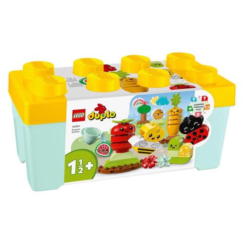 A készlet egy kockadobozt is tartalmaz, amivel könnyen rendet rakhattok a játék után.Tanulást segítő játékok gyerekeknek – A LEGO® DUPLO® Első készletek Biokert (10984) játékkal a 18 hónapos vagy nagyobb óvodások megismerkedhetnek a természettel, a teremtményekkel, és megtudhatják, hogyan nőnek a növények a kertekben. Funkciókkal teli szett a fantáziadús játékhoz – A készlet paradicsomot, répát és dinnyét, esőfelhőt és szivárványt, valamint fákat, virágokat, katicát, méhet, méhkast és locsolókannát is tartalmaz. Megtanítja a gyerekeket pakolni – Az egymásra pakolható kockadoboz 18 cm magas, 36 cm széles és 18 cm mély, amiben tárolhatjátok az elemeket, ha véget ért a játék.