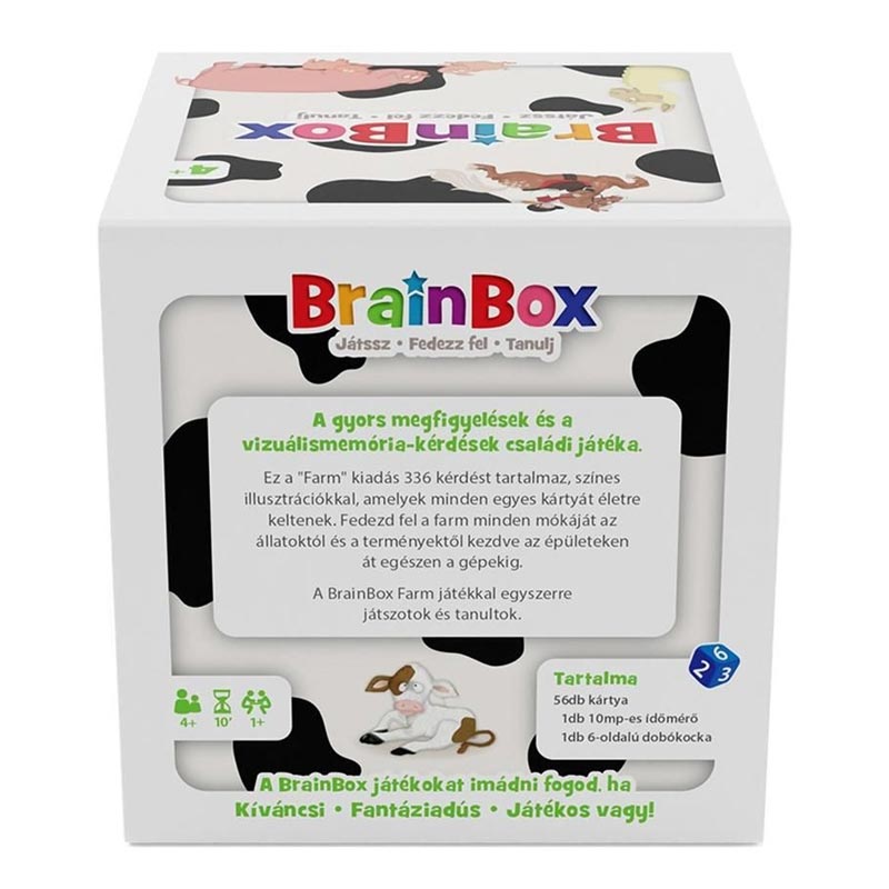 Játsszunk együtt és tanuljunk együtt a Brainbox farmos játékkal! A játék egyedül és csoportosan is játszható! Praktikus csomagolás, akár utazáshoz is használható. A memóriakártyákon farmon élő állatokat és élővilágot fedezhettek fel. Jegyezzétek meg mind és fejlesszétek memóriátokat.