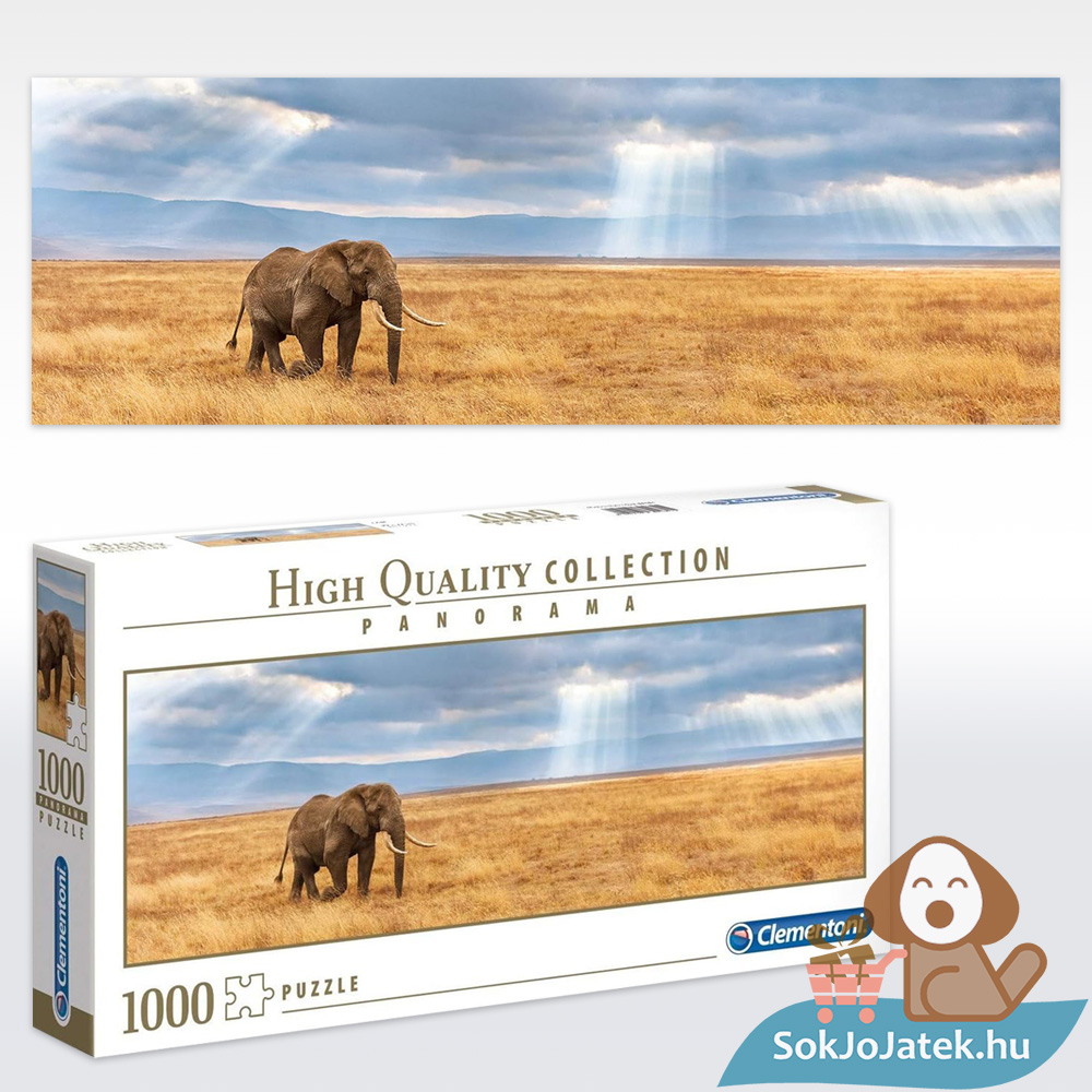 Elefánt a Szavannán panoráma puzzle képe és doboza, 1000 db (Clementoni 39484)