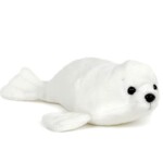 Prémium minőségű, Semo márkájú, 23 cm-es élethű fehér plüss fóka, műanyag szemekkel és orral.
