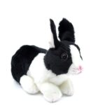 Prémium minőségű, Rappa márkájú 23 cm-es élethű fekete-fehér plüss nyuszi műanyag szemekkel.