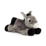 Prémium minőségű, Aurora márkájú, 20 cm-es fekvő plüss szamár bébi műanyag szemekkel, a Mini Flopsies sorozat tagja.