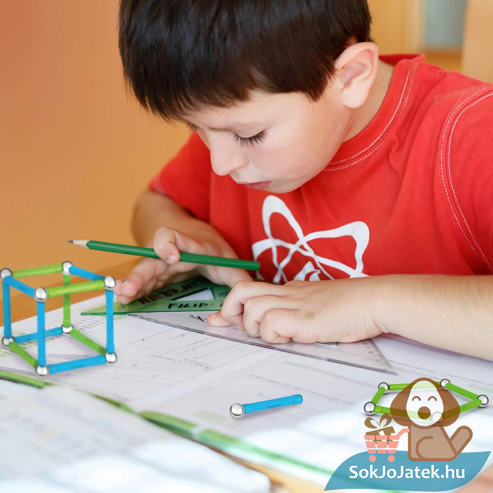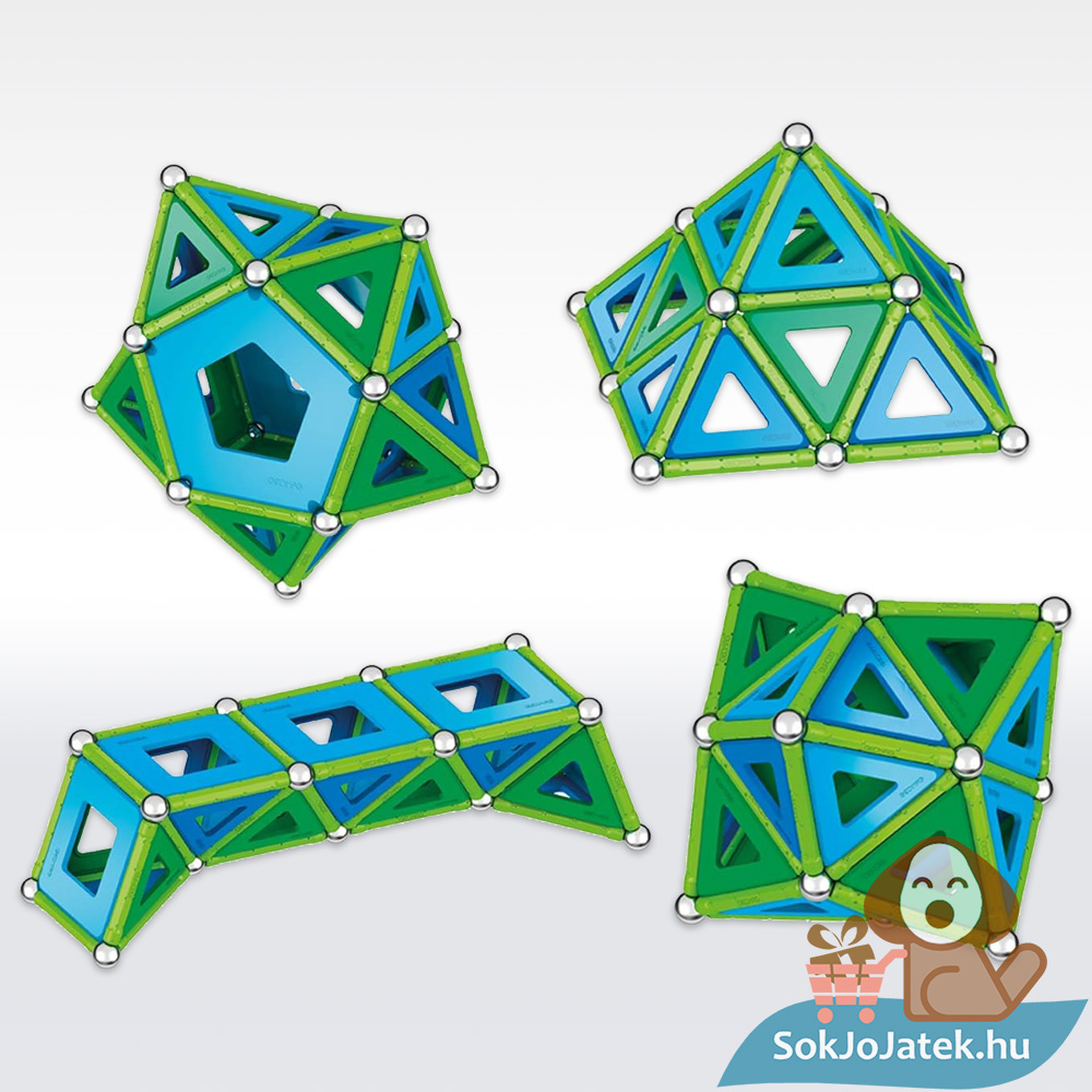 A játék szórakoztató módon fejleszti a logikai gondolkodást és a térlátást, miközben izgalmas kreációkat hozhatsz létre. Emellett a Geomag Classic egyedül újrahasznosított műanyagból készíti elemeit megújuló energiaforrások használatával, így a környezettatosságról is tanulhatsz építkezéseid során. A játék kék és zöld elemei könnyedén új ötletek megalkotására fog inspirálni, így sosem lesz egyhangú az építkezés!