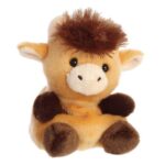 Hubert, a prémium minőségű, Aurora márkájú, 13 cm-es tenyérnyi, ülő plüss skót-felföldi marha műanyag szemekkel, a Palm Pals sorozat tagja.