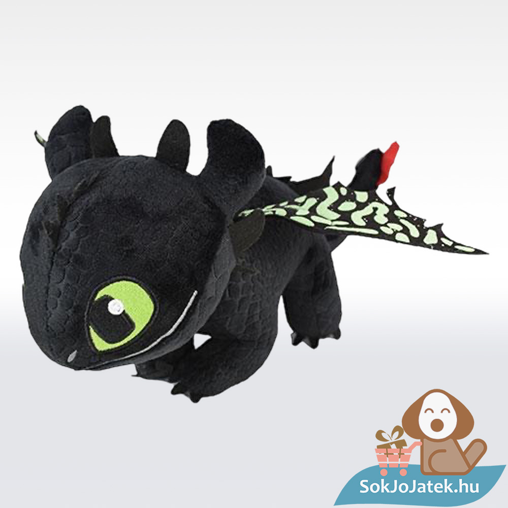 Így neveld a sárkányodat: Fogatlan az éjfúria plüss sárkány, sötétben világító, foszforeszkáló szárnyakkal (29 cm)