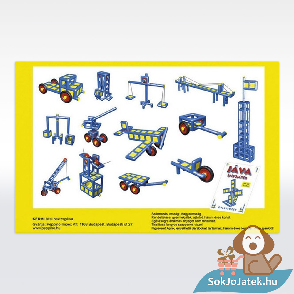 Építs különböző járműveket, épületeket Java építőelemekből! A Jáva 2 építőjáték egy műanyag csövekből, illesztékekből és kiegészítő elemekből álló építőkészlet, amivel szinte bármit meg tudsz alkotni.