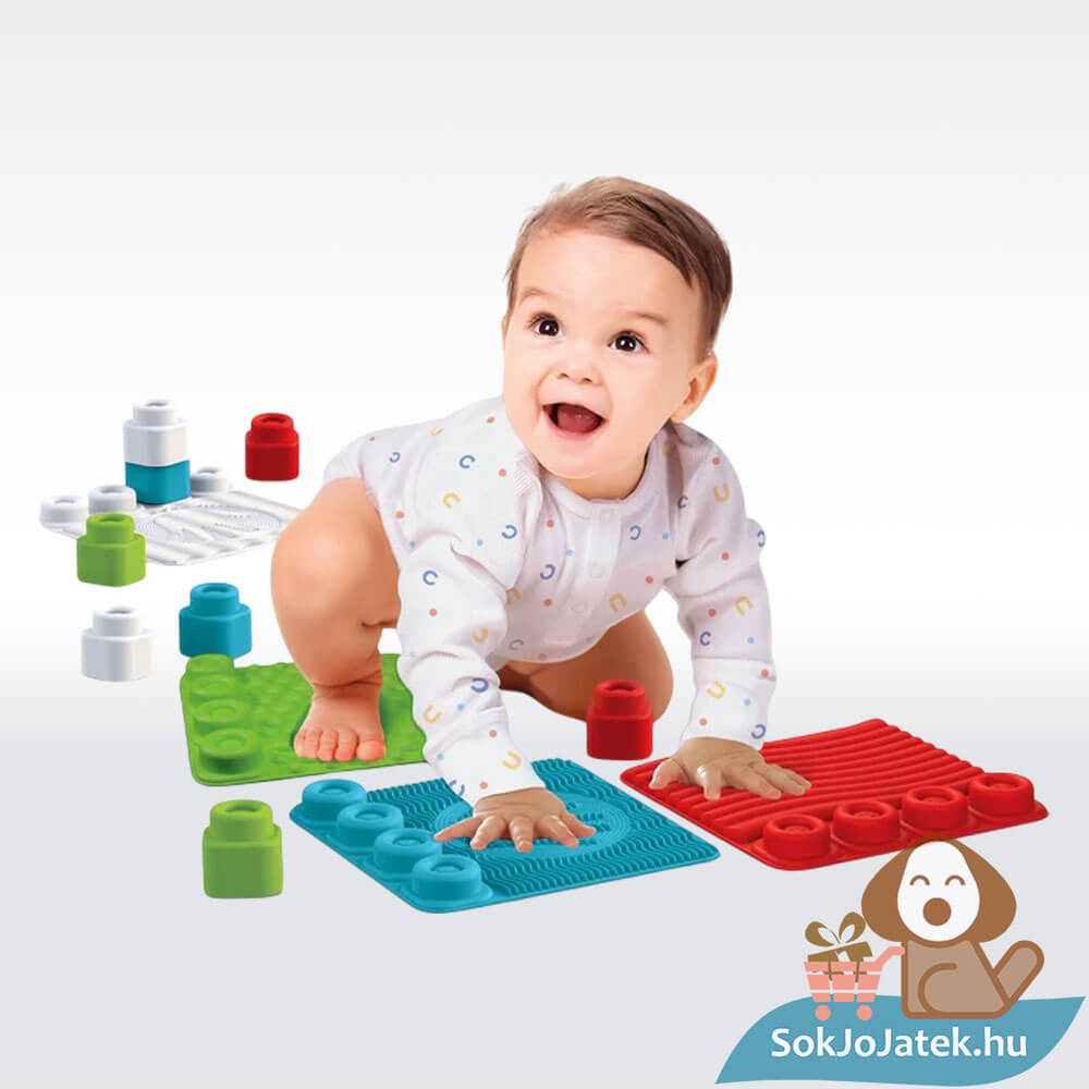 A különböző felületekkel fejleszthetjük a kicsik tapintás útján szerzett érzékelését. Míg a Clemmy építőkockák könnyedén összeilleszthetők és szétszedhetők, így a babák kézügyessége és szem-kéz koordinációja is javul. Ráadásul az építőkockákat még rágókaként is használhatják, így enyhítve a fogzás okozta fájdalmat. A könnyedén összeilleszthető, különböző színű kockákat a kicsik bármelyik kiválasztott szőnyegre ráilleszthetik.