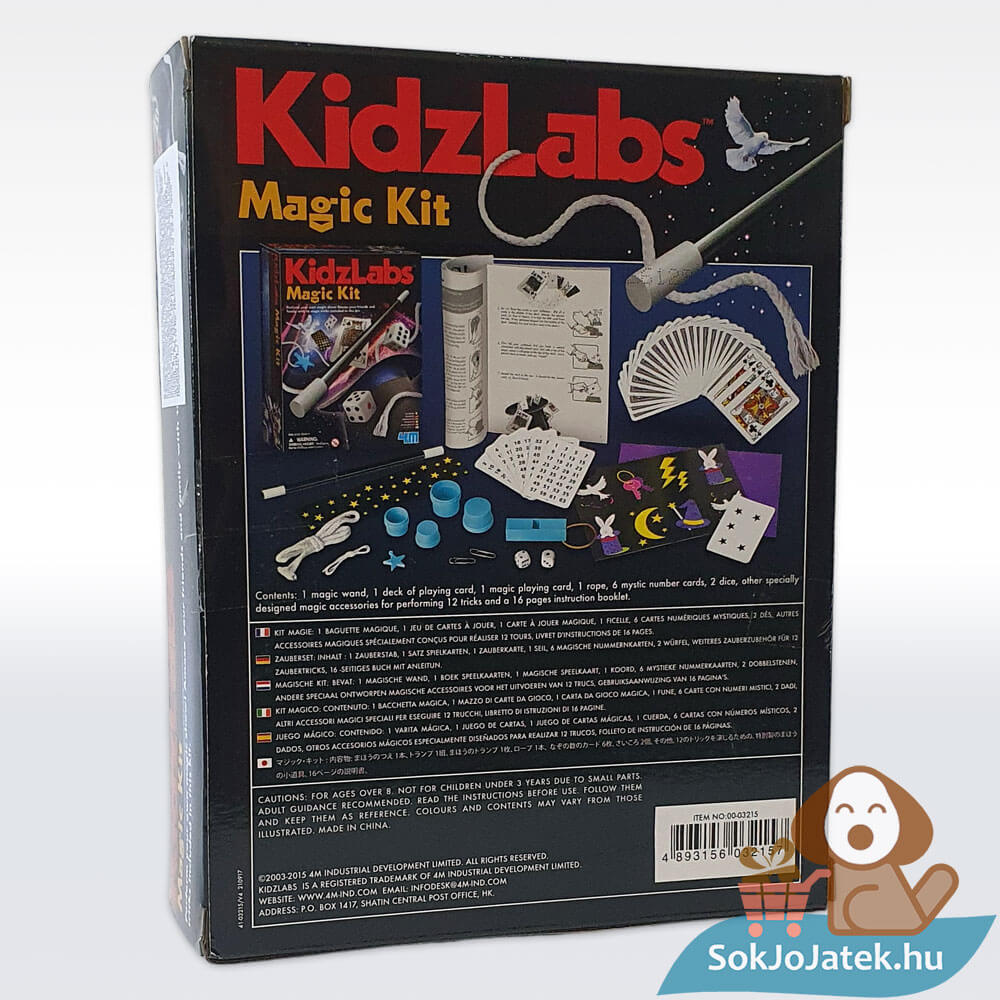 A doboz mindent tartalmaz, ami a bűvész trükkök bemutatásához szükséges: varázspálca, kártyalapok, kötél, dobókocka és további bűvész kellékek, melyek lehetőséget adnak a gyerekeknek a képzeletük szárnyalására. A részletes útmutatók lépésről lépésre vezetik őket, hogy gyorsan elsajátíthassák az alapvető bűvész technikákat. Ez a bűvész játék kiváló ajándékötlet is, amely 8 éves kortól ajánlott, és remek módja a családi közös élmények gazdagításának.
