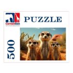 Kíváncsi szurikáták, 500 db-os Cornelissen márkájú puzzle. A kirakott kép mérete: kb. 50×36 cm.