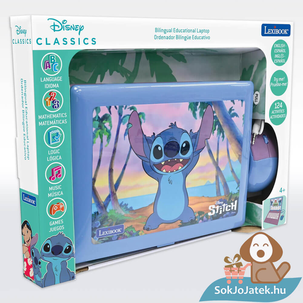 A Stitch mintás kétnyelvű tanuló laptop egy szórakoztató és oktató eszköz, amely játékos formában segíti a gyerekek fejlődését, miközben kedvenc Disney-szereplőjük, Stitch kíséri őket a tanulásban. A készülék összesen 124 különböző feladattal támogatja a nyelvi, matematikai, logikai és zenei készségek fejlesztését.