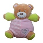 A mackó rózsaszín testét kétféle textil borítja: egyik fele pöttyös, másik egyszínű, ami még érdekesebbé teszi a tapintását. A bal oldalán hímzett “Little Angel” felirat található, ami alkalmassá teszi ajándékozásra is, legyen szó babaváró buliról, keresztelőről vagy épp egy első születésnapról. Élénk zöld tappancsai és karjai játékos kontrasztot alkotnak a rózsaszín testtel, a barátságos, mosolygós arca pedig minden gyermeket jókedvre derít.