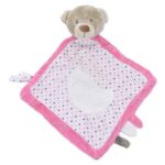 Ez a bájos macis szundikendő ideális első alvótárs kisbabák számára. A 30 cm-es kendő közepén egy kedves barna macifej mosolyog, ami azonnal biztonságérzetet nyújt a legkisebbeknek is. A puha anyagból készült kendő fehér alapon rózsaszín, szürke és barna pöttyökkel díszített, szegélyét pedig egy élénk rózsaszín plüss anyag keretezi. Közepén egy hold alakú textúra található, amely segít a tapintásérzék fejlődésében.