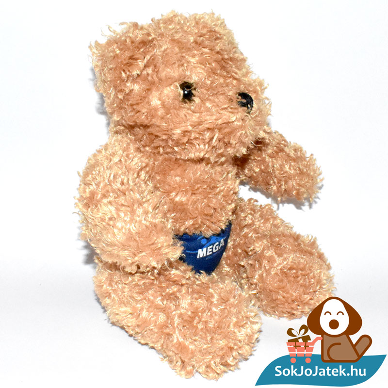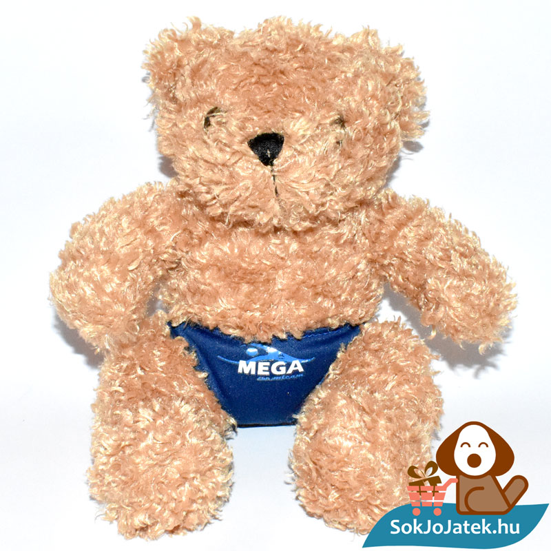 Ez a medve egy 26 cm-es plüssfigura, mely varrott orrú, varrott szájú, szemei viszont műanyagból készültek. Ártatlan kis csillogó gombszemei vannak, a légynek sem tudna ártani. Nadrágja kék színű, melyen a Mega Zwemteam belga úszók logója látható. Ültetett plüssfigura, önállóan, kitámasztás nélkül is megül, nem borul el. Alulról nem súlyozott. Műanyag, kemény tartozéka nincs – a szemein kívül. Mosógépben kimosható alacsony hőfokon. Három éven aluliak számára nem ajánlott.