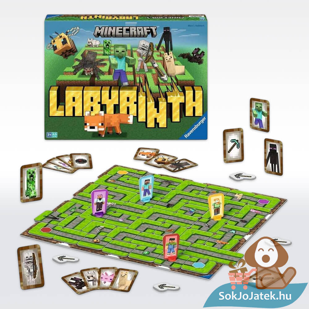 Lépj be a Minecraft világába egy izgalmas fordulattal, most a klasszikus Labirintus társasjáték formájában! A Minecraftos Labirintus társasjáték különleges élményt kínál 2–4 játékos számára, 7 éves kortól, ahol a cél ikonikus karakterek és tárgyak felkutatása egy folyamatosan változó útvesztőben.