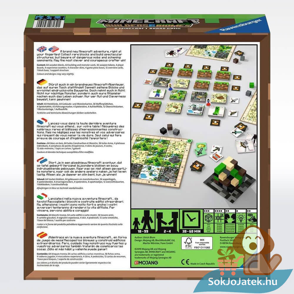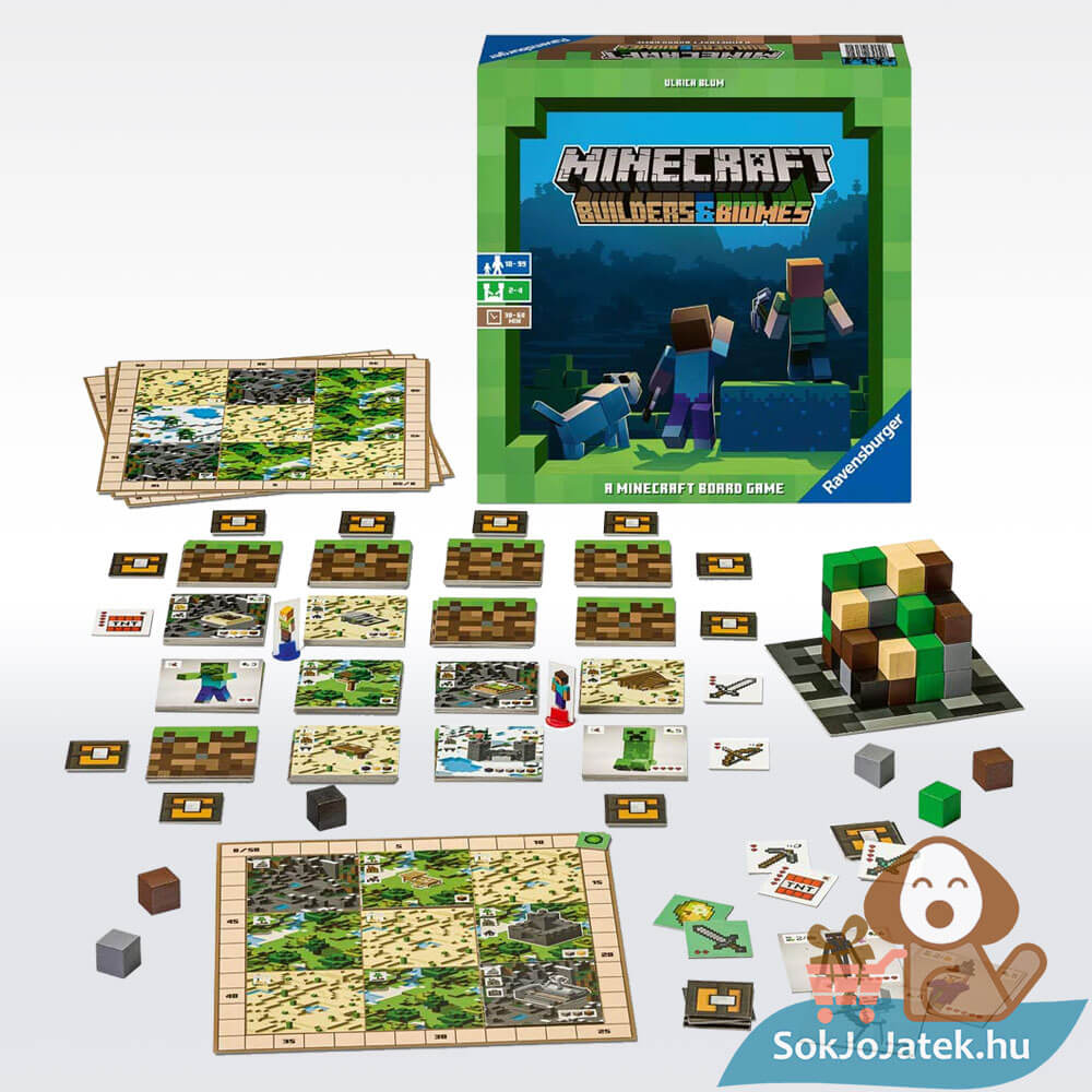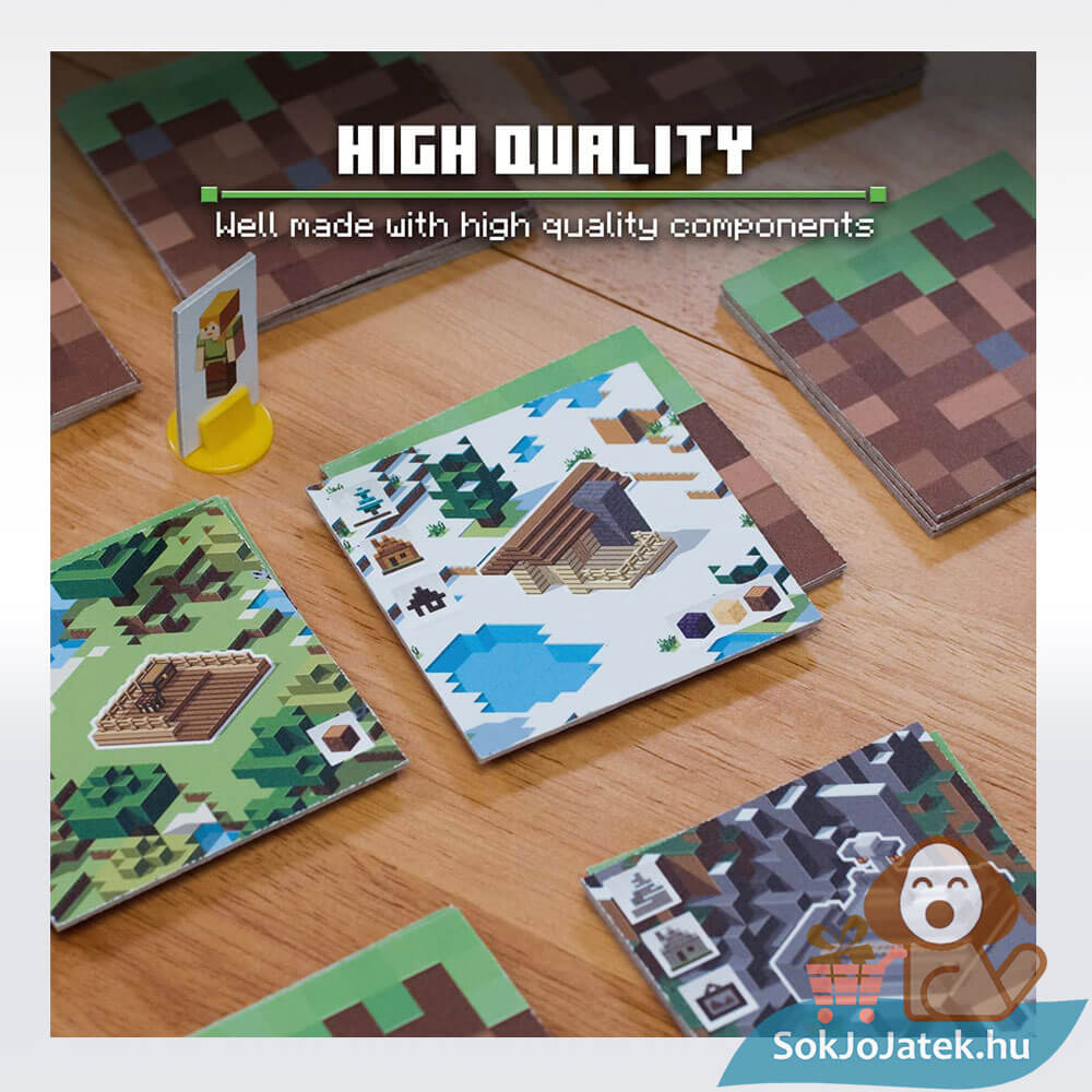 Folytasd a Minecraft videójáték izgalmait a valós térben! Szeretsz építkezni és csatákat vívni különböző szörnyekkel? Most a Minecraft társasjátékkal egyedülálló kalandokban lehet részed. Ahogyan az eredeti videójátékban, itt is fa blokkokat kell építeni, melyekkel pontokat gyűjthetsz.