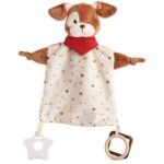 A babakendő két alsó sarkán különböző formájú rágókák találhatók, ezek biztonságos anyagból készültek, és segítenek enyhíteni a fogzás okozta kellemetlenségeket. A puha anyag, az ölelhető kialakítás és a multifunkciós jellege miatt a kutyás szundikendő ideális választás akár babaváró ajándéknak is.
