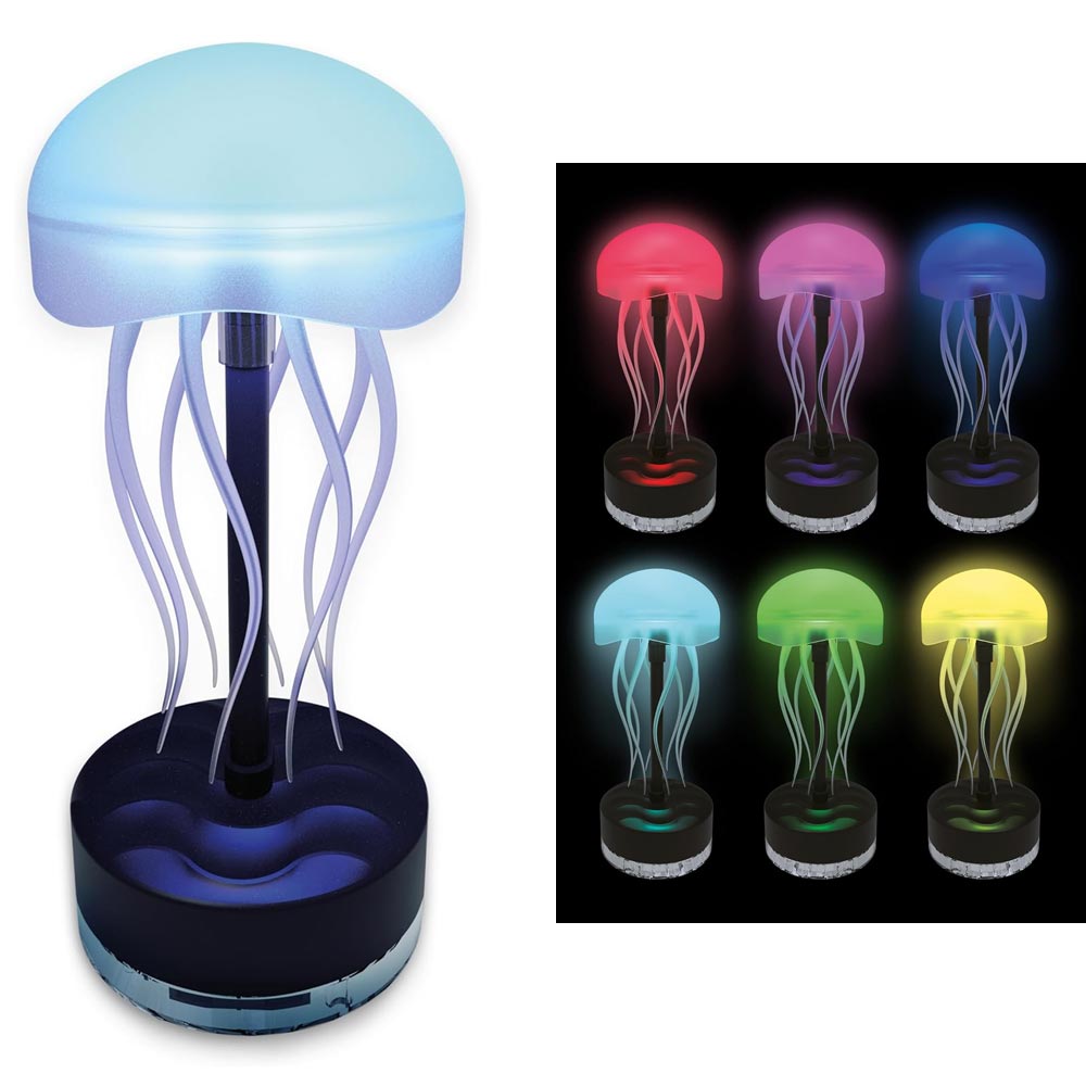 A lámpa 6 különböző LED színkombinációban világít, amelyek automatikusan váltakoznak. A csápok lassan hullámzó mozgása igazán látványos, nyugtató hatású.