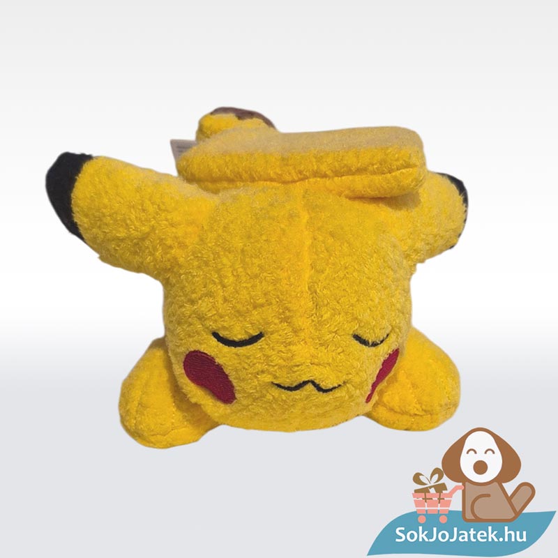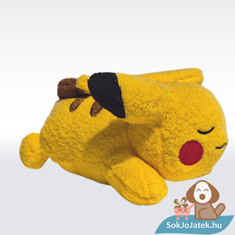 A kb. 15 cm-es plüss a Jazwares hivatalos, licencelt terméke, amely puha, prémium tapintású anyagból készült. Pikachu hason fekve, békésen szunyókál, így tökéletes társ lehet pihenéshez, alváshoz vagy akár dekorációként is.