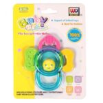 Rázd és rágcsáld a kis állatkát! A Rágókás műanyag csörgő egy kétfunkciós bébijáték, ami fejleszti a baba érzékszerveit! A csörgő színes golyókkal van töltve, amik csörgő-zörgő hangot adnak ki magukból. A csörgő két szárnya lapos műanyagból készült, és miközben rágcsálja a pici, csillapodik a növekedő fogak kellemetlen érzése. A Rágókás műanyag csörgő babakocsira, kiságyra is felfogatható. Méretek: 9 x 11 cm.