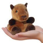 Sid, a prémium minőségű, Aurora márkájú, 13 cm-es tenyérnyi, ülő plüss bébi capybara műanyag szemekkel, a Palm Pals sorozat tagja.
