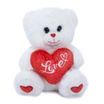 Szerelmes, 15 cm-es fehér maci plüss szívvel, szívecskés tappancsokkal, Valentin napra, évfordulóra.