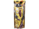 Öltözz be cowboynak, seriffnek vagy banditának! A Cowboy fegyver készlet műanyag pisztolyt, puskát és kiegészítőket rejt magában, amivel a vadnyugat hősévé válhatsz! A pisztolytáskát fel tudod fogatni az övedre, sarkantyút erősíthetsz a bokáidra, lehetsz rendőrbíró vagy bandita is! A Cowboy fegyver készlet együtt használható minden cowboy jelmezzel! Puska mérete: 57 cm, pisztoly mérete: 28 cm.