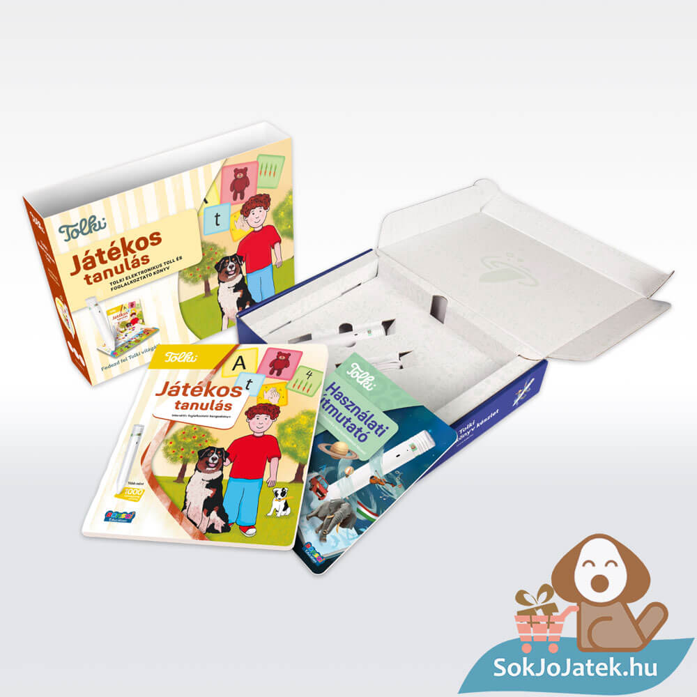 A Tolki foglalkoztató hangoskönyv egy interaktív, elektronikus tollal működő játék szett mely minden óvodás és kisiskolás gyermek számára játékos tanulásra bíztatja a csemetéket. A kezdőszettben megtaláljátok az elektronikus tollat és a játékos tanulás című könyvet is, amivel számos olyan dolgokat tanulhatnak meg, mint pl. a étkezés, időjárás, ABC, számok, bevásárlás, közlekedés, járművek és rengeteg egyéb alapfogalmak ismerete.