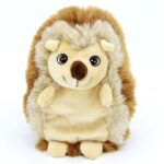 Ülő 17 cm-es plüss sündisznó, hímzett szemekkel. Ez a termék 100% újrahasznosított poliészter (PET) anyagból készült.