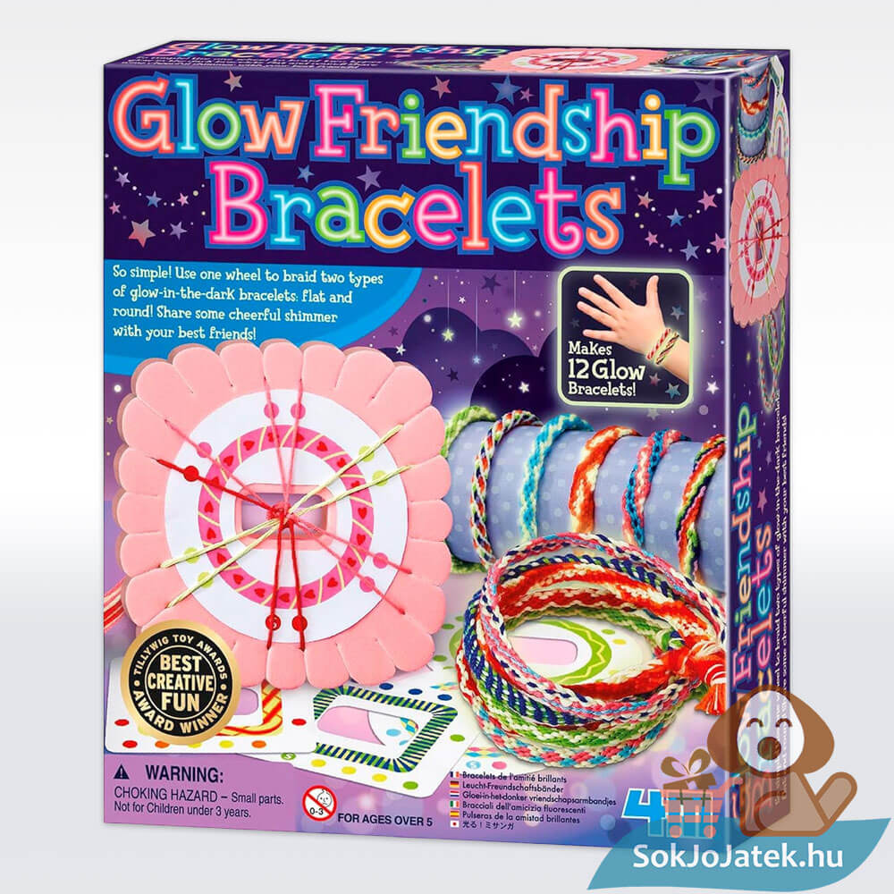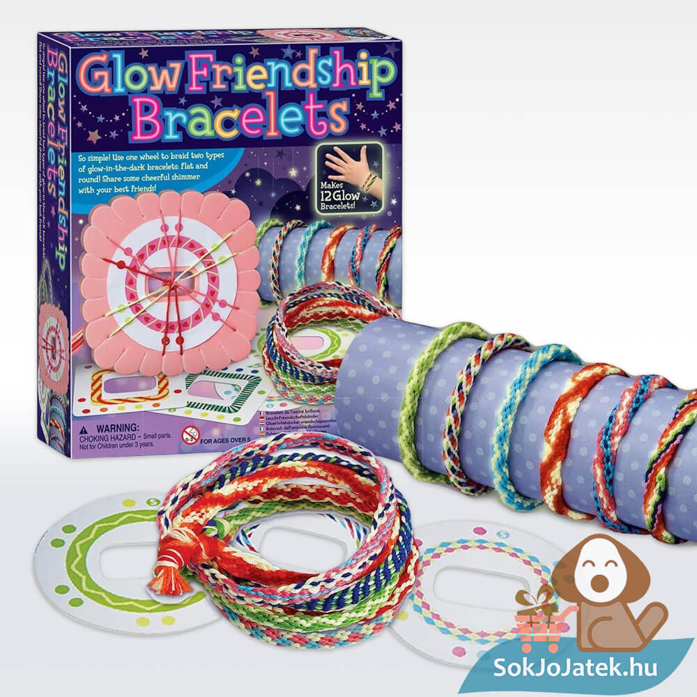 Készítsetek barátság karkötőket, amelyek nemcsak szépek, de világítanak is! A 4M márkájú világító barátság karkötő készítő szett lehetőséget ad 12 egyedi, foszforeszkáló karkötő elkészítésére, amit aztán barátainknak ajándékozhattok.