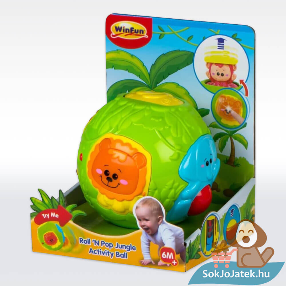 Világító dzsungel labda, hangot adó sétagolyó, készségfejlesztő bébijáték (Winfun)